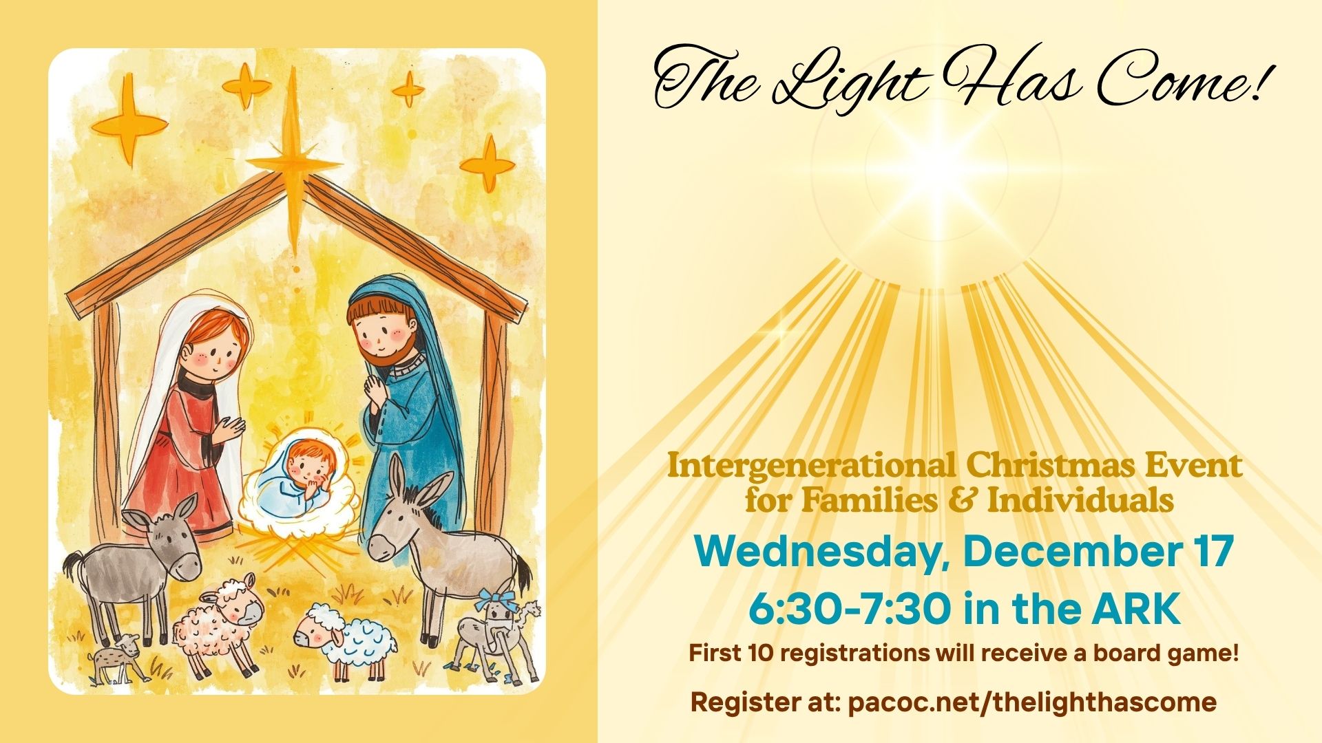 Celebrate the birth of Christ with the children's ministry for this interactive event for families and individuals. As a perk, we are serving cookies and hot chocolate.